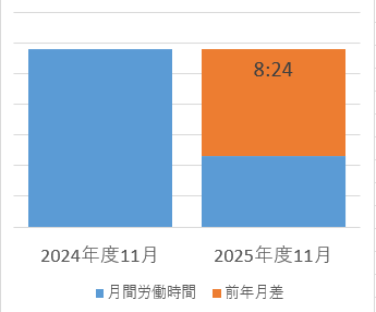 取り組みの1つとして、労働時間の短縮に努めています。<月間前年比較>◆2024年度11月と2025年度11月でおよそ8時間減。引き続き月間で集計し更新していきます。...