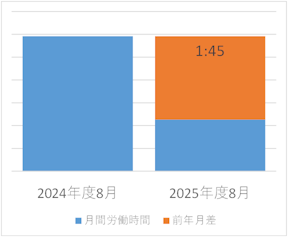 取り組みの1つとして、労働時間の短縮に努めています。<月間前年比較>◆2024年度8月と2025年度8月でおよそ1時間30分減。引き続き月間で集計し更新していきます。...