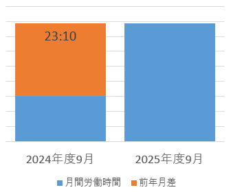 お知らせ 2024年問題への取り組み「月間」 2025-10-15 16:01:46 取り組みの1つとして、労働時間の短縮に努めています。 <月間前年比較> ◆2024年度9月と2025年度9月でおよそ23時間増。 繁忙期の為、前年度よりも増となりました。 引き続き月間で集計し更新していきます。